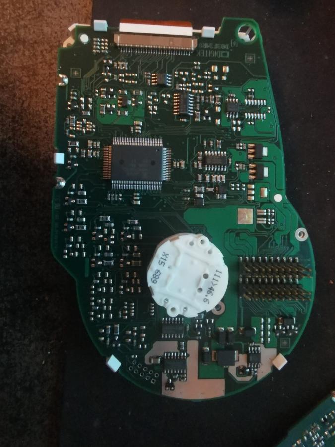 Da dieser von einem Unfallmotorrad stammte und das Plexiglas Sprünge hatte hab ich diesen kurzerhand geöffnet, den Print fotografiert und in der Firma zum Elektronik Kollegen gegangen.